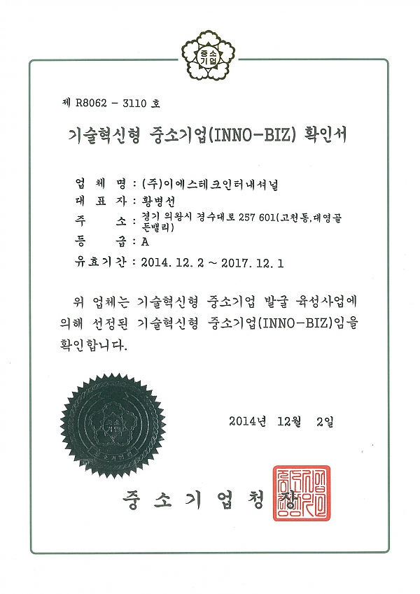 INNO-BIZ > Certificate
