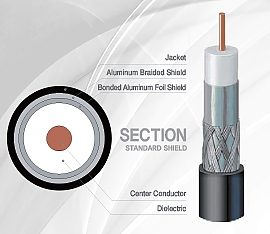 18 AWG copper clad steel center conductor, gas foamed polyethylene